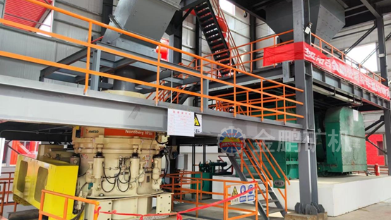 破碎機采用具有國際先進水平的HP300圓錐破碎機、國內先進的高壓輥磨機作為破碎設備,具有處理能力大、破碎比高、破碎產品細的特點。